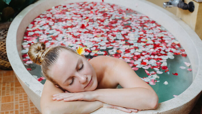 Unwind in a luxurious flower bath, a signature spa ritual that refreshes the body and delights the senses.